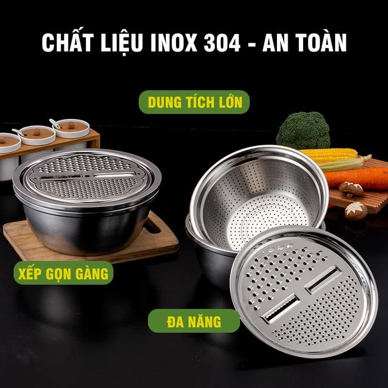 Nhà cửa & Đời sống > Dụng cụ chăm sóc nhà cửa > Chậu, xô & gáo nước || Bộ rổ chậu kèm nạo rau củ quả inox đa chức năng 3in1 cao cấp siêu tiện dụng POT KITCHENCòn hàng