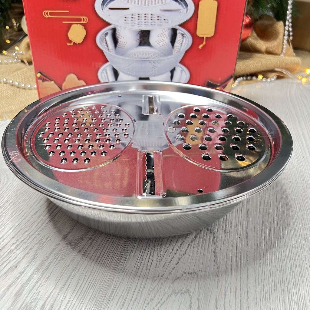 Bộ rổ, chậu kèm nạo rau củ quả inox đa năng 3in1 cao cấp siêu tiện dụng