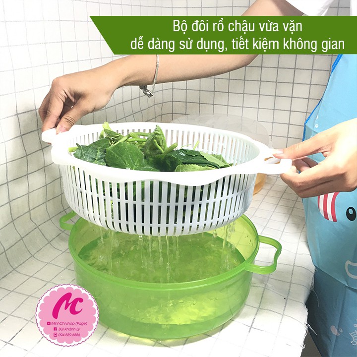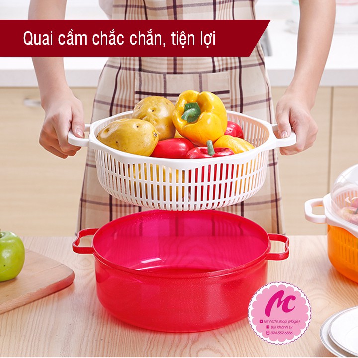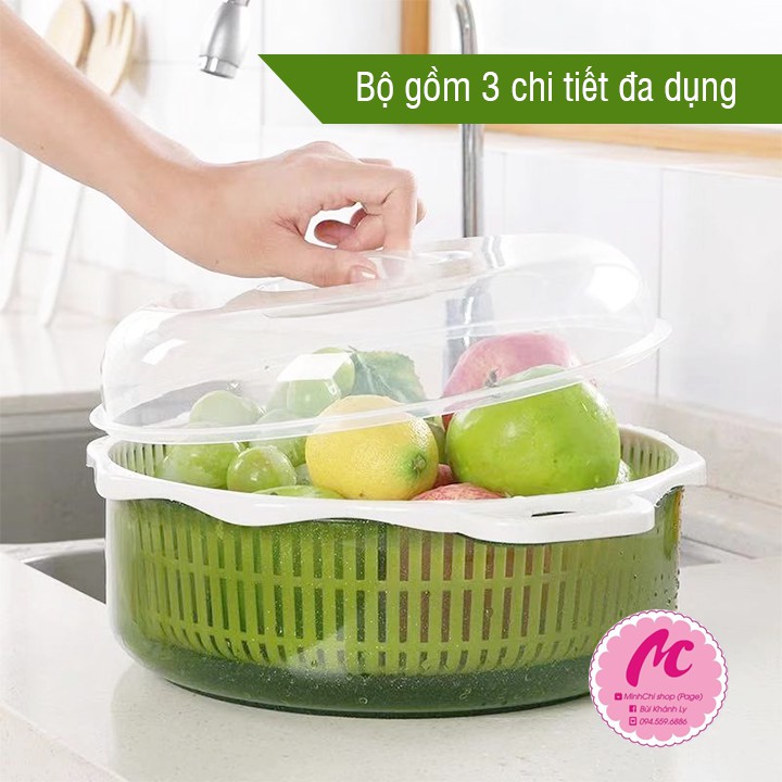 Với thiết kế thông minh Bộ rổ chậu tròn có nắp đậy gồm 3 món: chậu, rổ, nắp đậy nên có công dụng rất đa dạng khi sử dụng. Bạn vừa có thể rửa, làm ráo thực phẩm vừa có thể dùng nắp đậy để bảo quản, giữ cho thực phẩm luôn xanh tươi