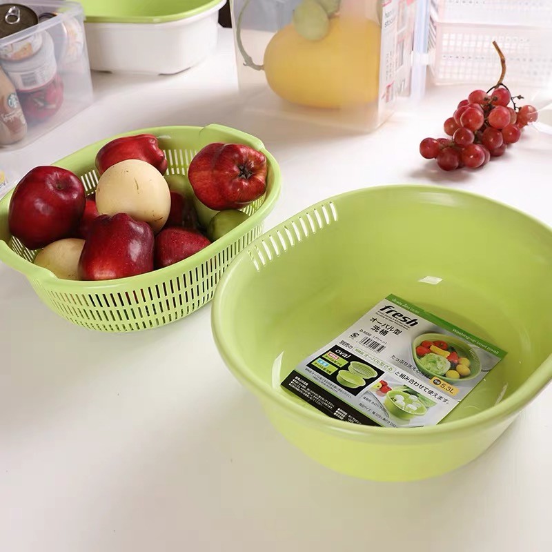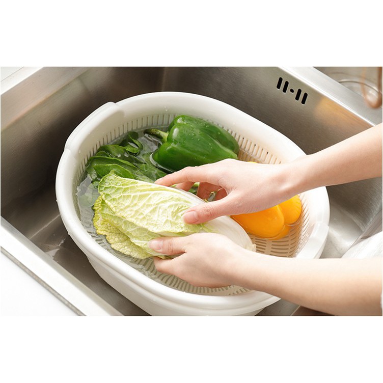 🍀 Công dụng: đựng rau hoa quả, phần rổ hai bên có thiết kế có thể cầm nắm dễ dàng. Chậu vừa dùng để rửa vừa dùng làm khay hứng nước tiện dụng.