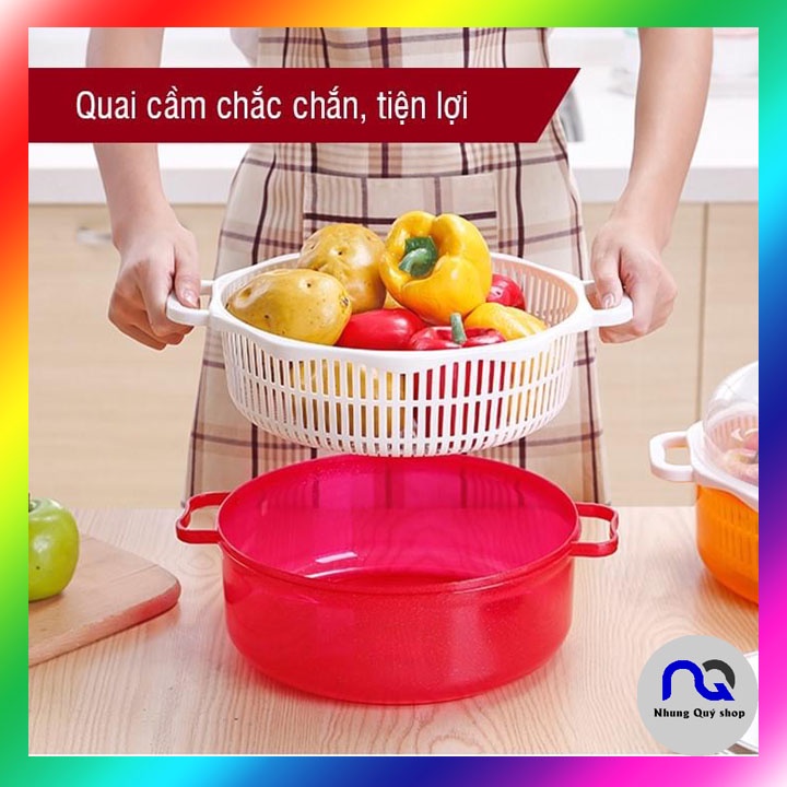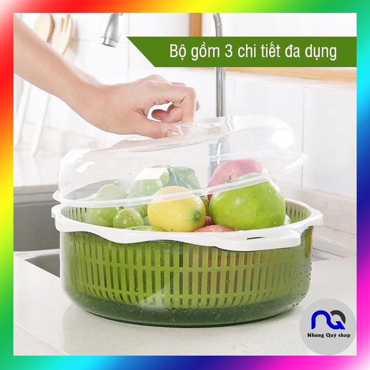 Với thiết kế thông minh Bộ rổ chậu tròn có nắp đậy gồm 3 món: chậu, rổ, nắp đậy nên có công dụng rất đa dạng khi sử dụng. Bạn vừa có thể rửa, làm ráo thực phẩm vừa có thể dùng nắp đậy để bảo quản, giữ cho thực phẩm luôn xanh tươi