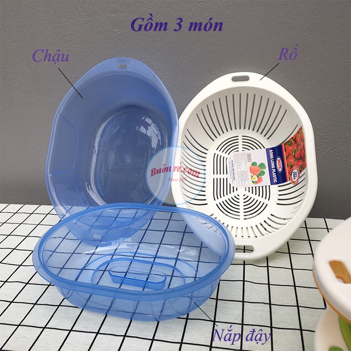 Bộ rổ chậu Song Long 2521 có nắp đậy tiện lợi hàng cao cấp -Buôn rẻ 01012