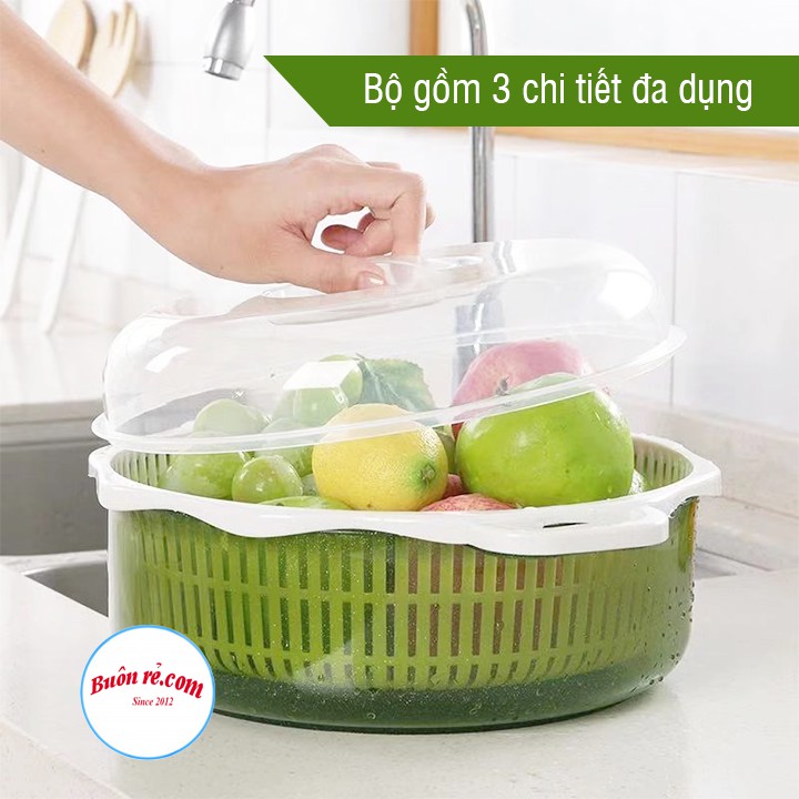 Với thiết kế thông minh Bộ rổ chậu tròn có nắp đậy gồm 3 món: chậu, rổ, nắp đậy nên có công dụng rất đa dạng khi sử dụng. Bạn vừa có thể rửa, làm ráo thực phẩm vừa có thể dùng nắp đậy để bảo quản, giữ cho thực phẩm luôn xanh tươi