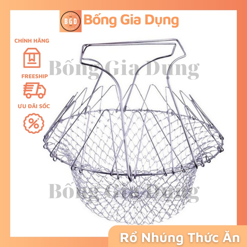 - Rổ Nhúng Thông Minh với thiết kế thông minh gồm các móc xích dễ gập gọn, nhanh chóng biến hóa thành nhiều công cụ giúp bạn luộc, chiên thức ăn đơn giản và nhanh hơn. Hay biến thành một chiếc rổ tiện lợi, giúp thực phẩm luôn khô ráo, sạch sẽ.