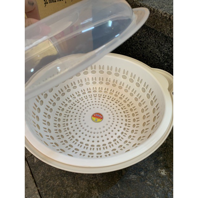 rổ rùng đựng , rủa. hoa quả , rửa đồ tươi sống . có nắp đạy không lo bi bụi bẩn và có đáy chậu không lo bị nước rớt ra ngoài