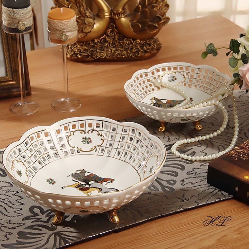 Nhà cửa & Đời sống > Bộ đồ bàn ăn > Dĩa || Rổ đĩa sứ đựng hoa quả sang chảnhCòn hàng