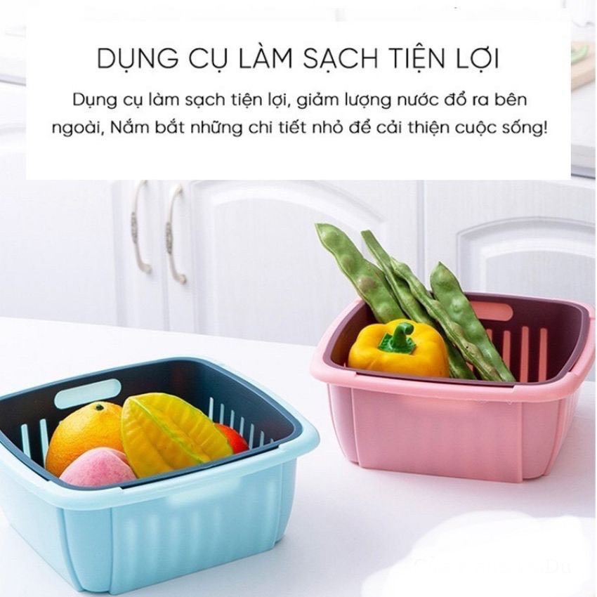 Hộp đựng thực phẩm có rổ nhựa và nắp đậy đa năng khay chậu vuông 2 lớp 3 trong 1 để đồ thức ăn rau củ trái câyBộ rổ ,chậu rửa -hộp đựng rau củ quả thực phẩm 2in1-giúp thực phẩm luôn tươi mới đa chức năng có thể được sử dụng để lưu trữ rau và trái cây
