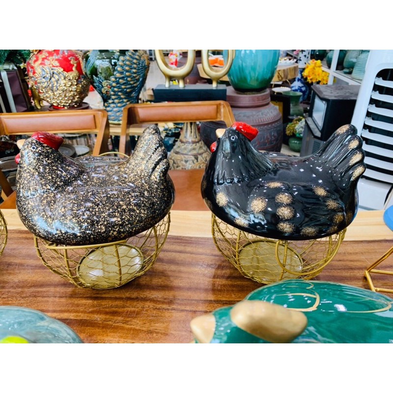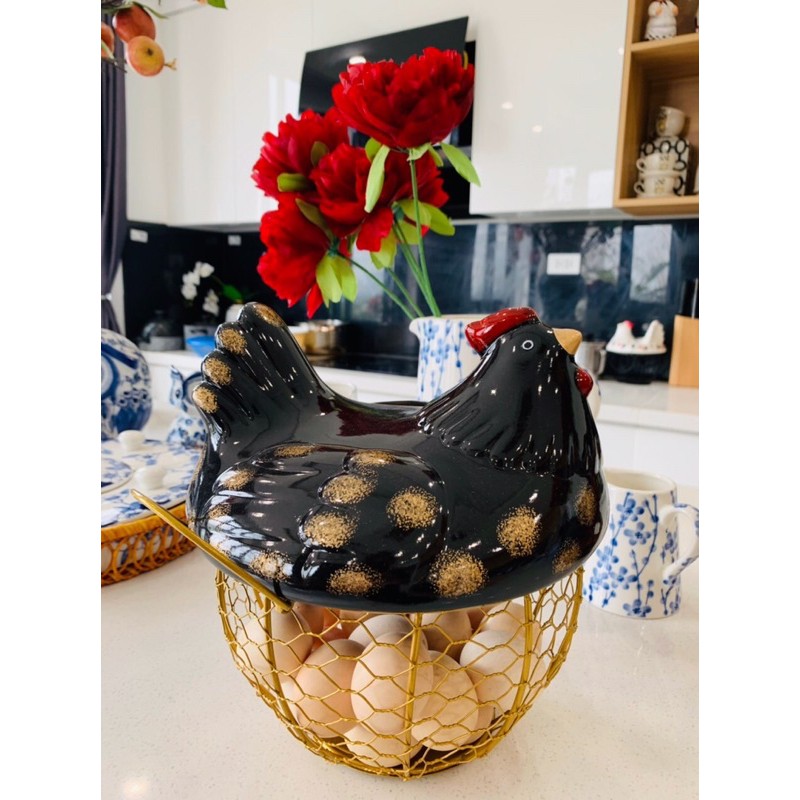 Giỏ đựng đồ là sản phẩm với nắp hình con gà bằng gốm độc đáo dùng để đựng trứng gà, đựng trái cây… với thiết kế cute, làm tăng vẻ đẹp cho không gian nội thất.