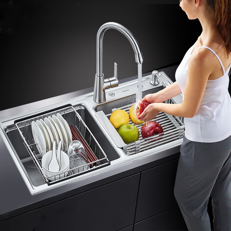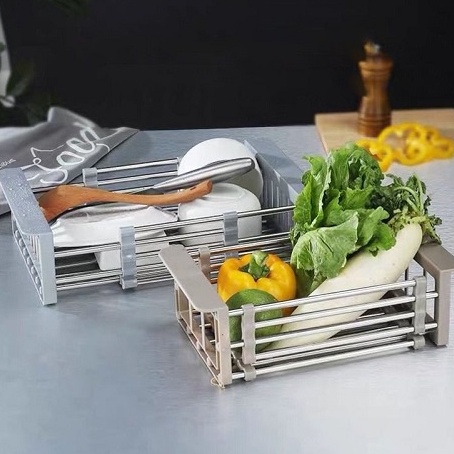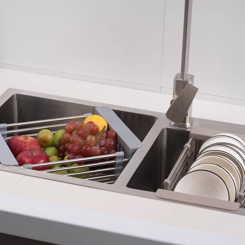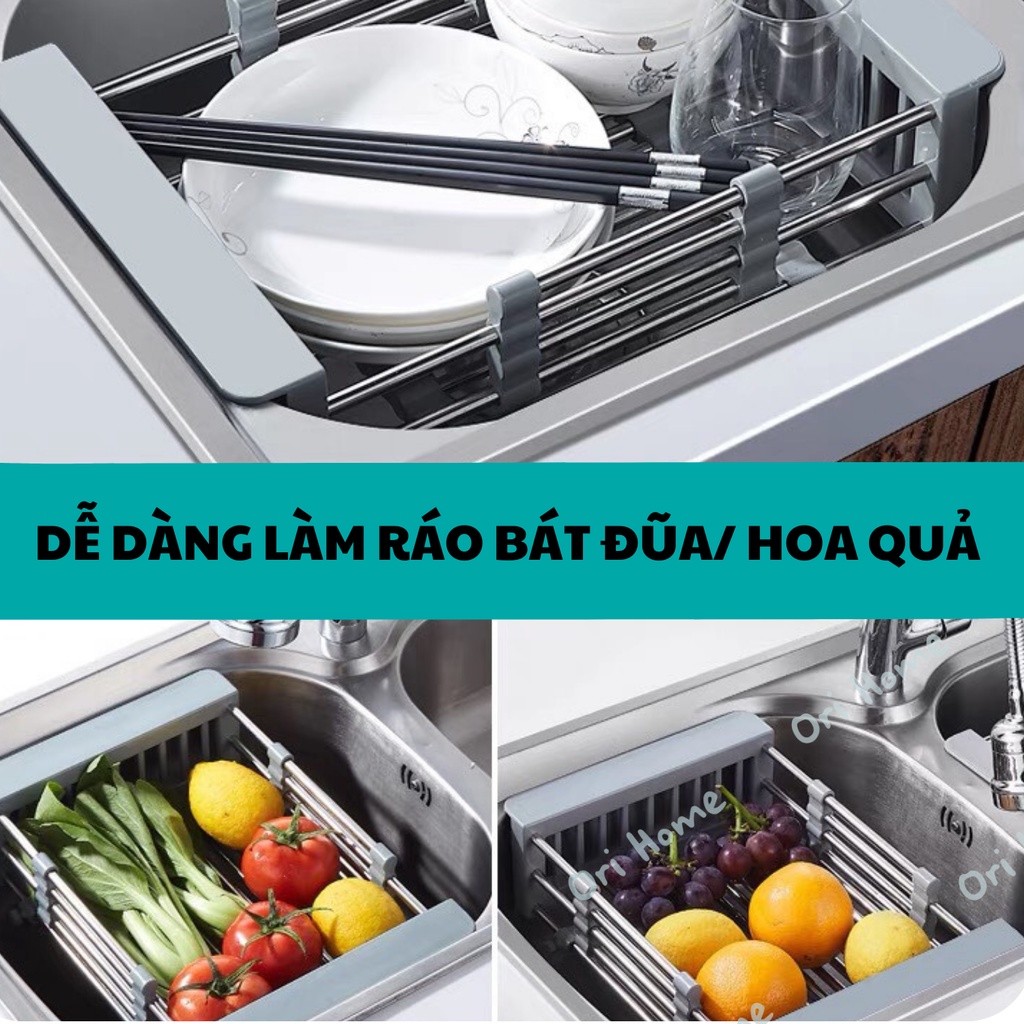 Rổ gác bồn rửa chén có thể co dãn điền chỉnh kích thước inox 304 bền bỉ tiện lợi
