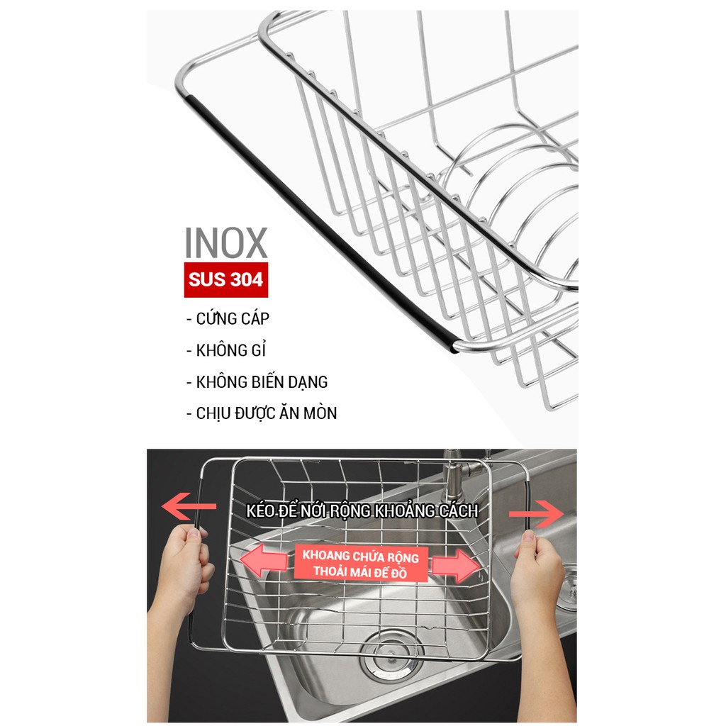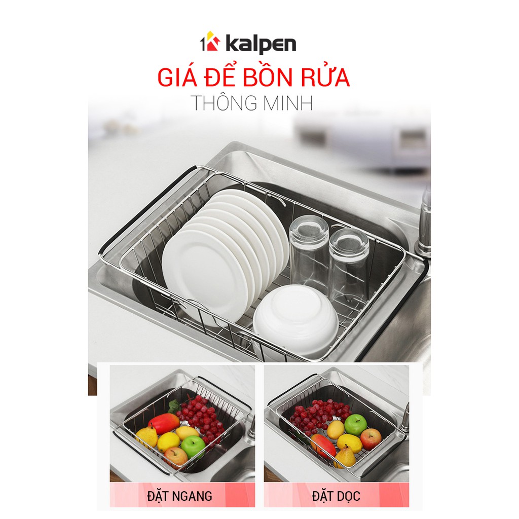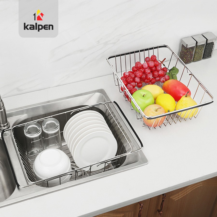 RỔ GÁC BỒN RỬA CHÉN INOX 304 Có Thể Co Rút Điều Chỉnh Độ Dài Thông Minh Kalpen, KBRK33