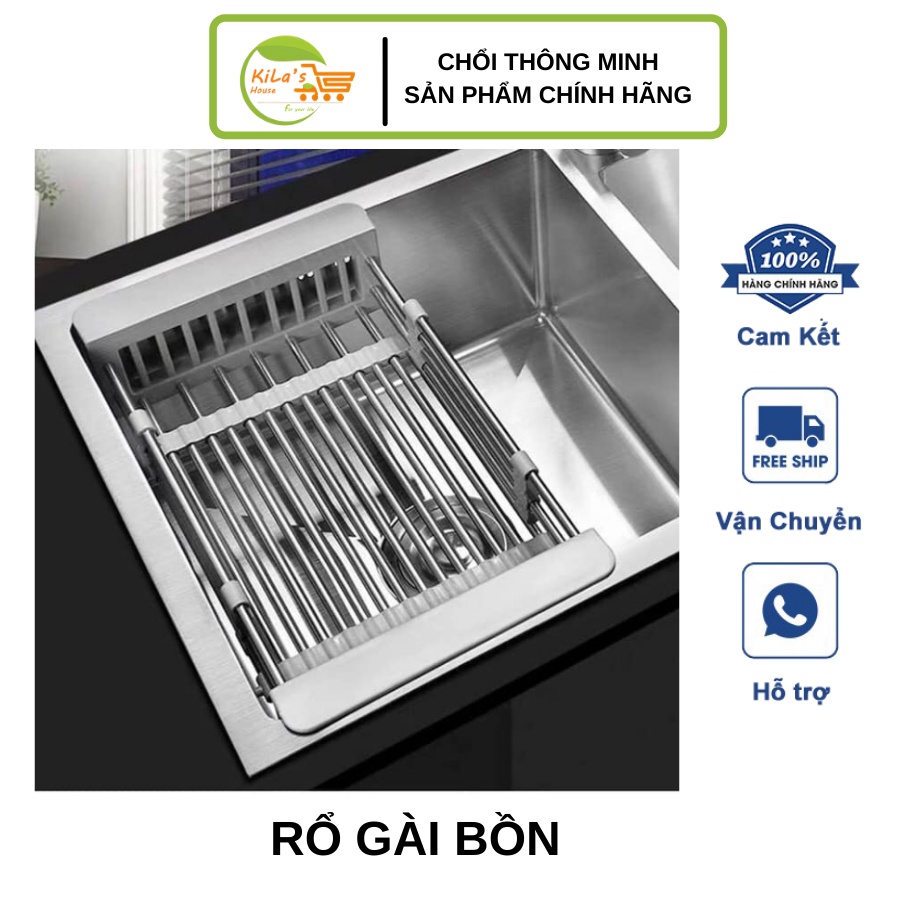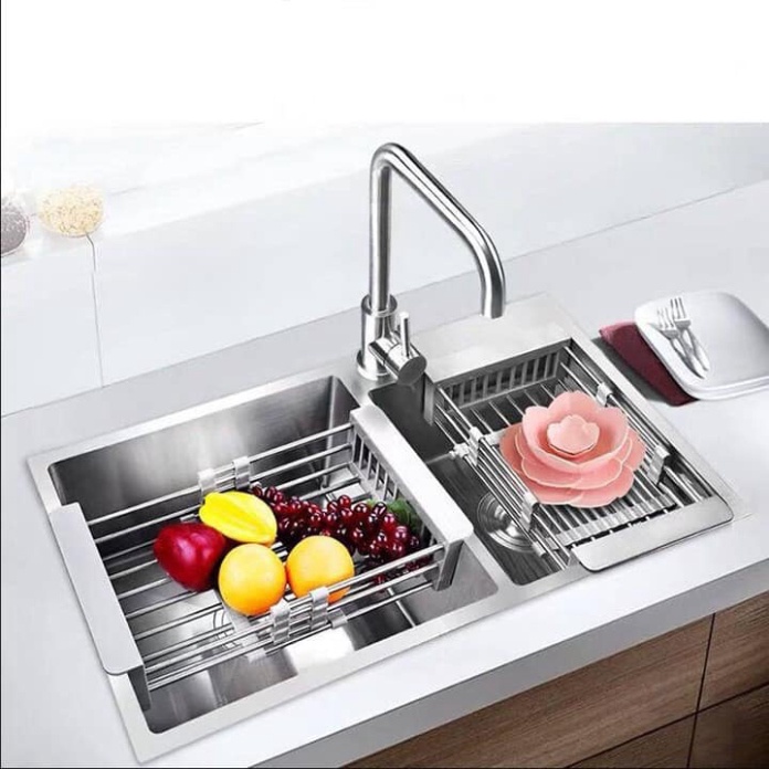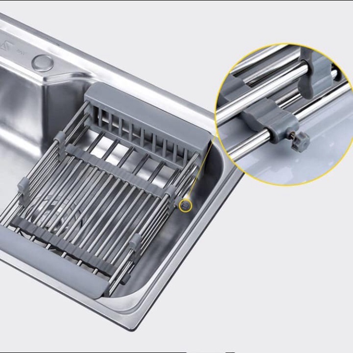 Rổ gài bồn rửa bát rút gọn linh hoạt bằng inox tiện lợi phù hợp mọi gia đình
