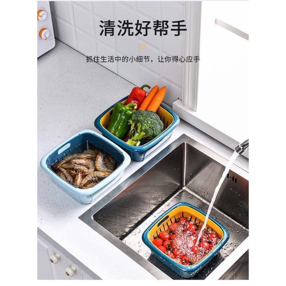 RỔ HOA QUẢ VUÔNG 3 IN 1 KÈM CHẬU VÀ NẮP TIỆN LỢI
