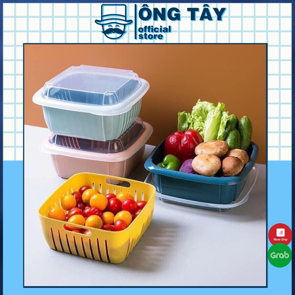 RỔ HOA QUẢ VUÔNG 3 IN 1 KÈM CHẬU VÀ NẮP TIỆN LỢI