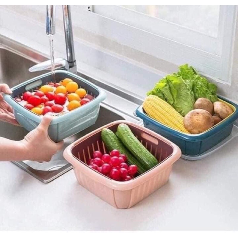 RỔ HOA QUẢ VUÔNG 3 IN 1 KÈM CHẬU VÀ NẮP TIỆN LỢIDành cho các chị nội trợ đây ạ