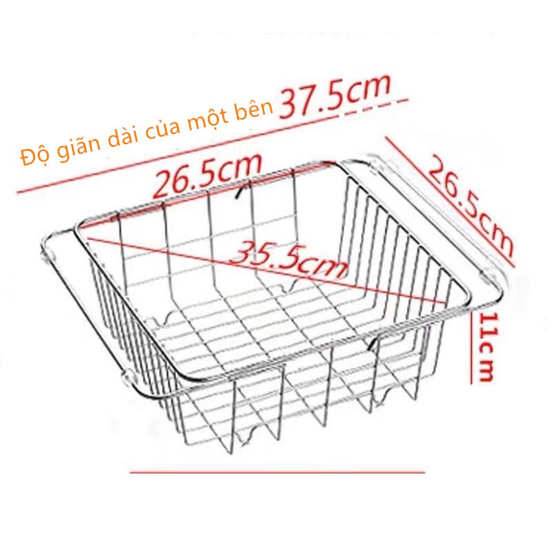 Có thể kéo dài, thích hợp để trên bồn rửa chén, có thể dùng để đựng chén đũa, phần đáy rổ có thiết kế chân đứng, có thể để rổ lên bàn mà k sợ bị ngã.