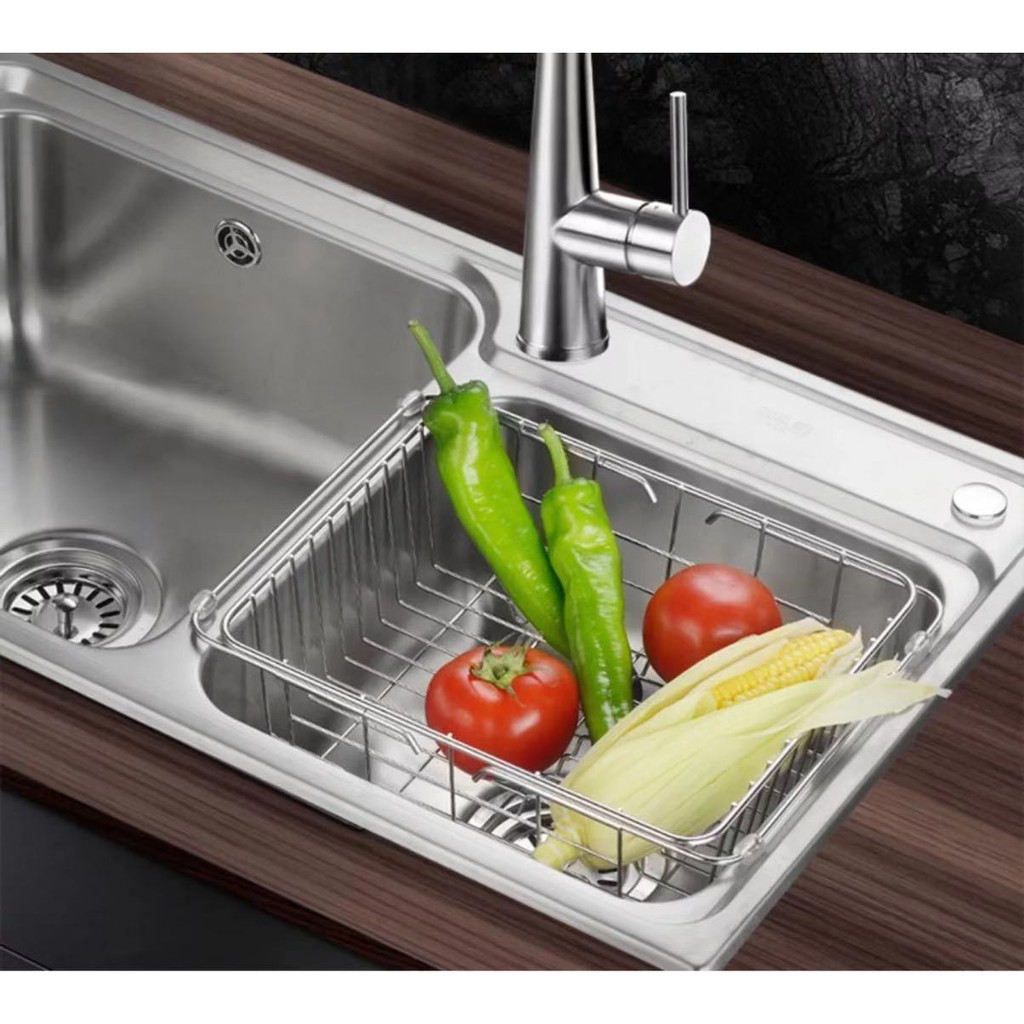 Nhà cửa & Đời sống > Dụng cụ chăm sóc nhà cửa > Chậu, xô & gáo nước || Rổ inox 304 treo bồn rửa chén - Rổ Inox Chậu Rửa --kiểu căng đơn phương D2626Còn hàng