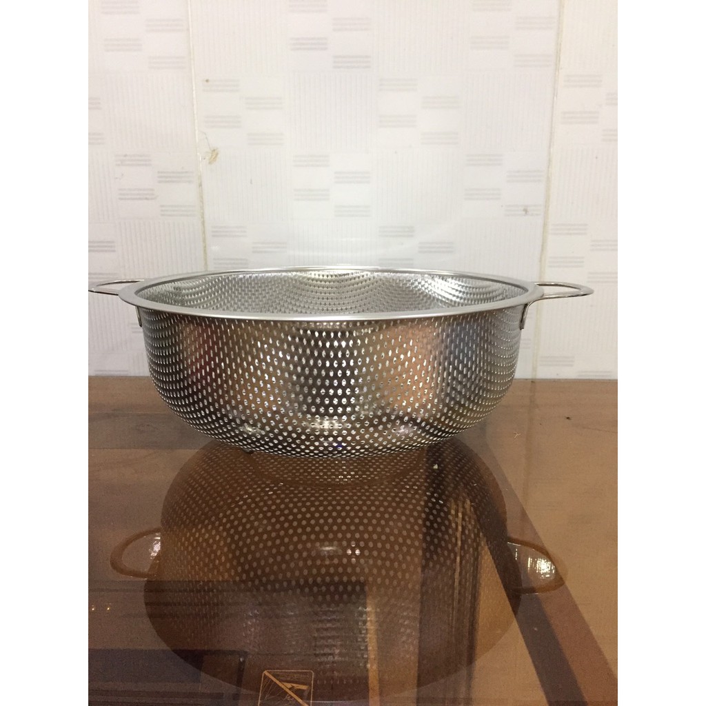 - Lưới rổ dày, sáng bóng, không ọp ẹp. Lỗ rộng 2mm giúp rửa rau, trụng bún nhanh thoát nước.