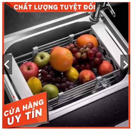 Rổ inox bồn rửa thu gọn đựng hoa quả tiện ích