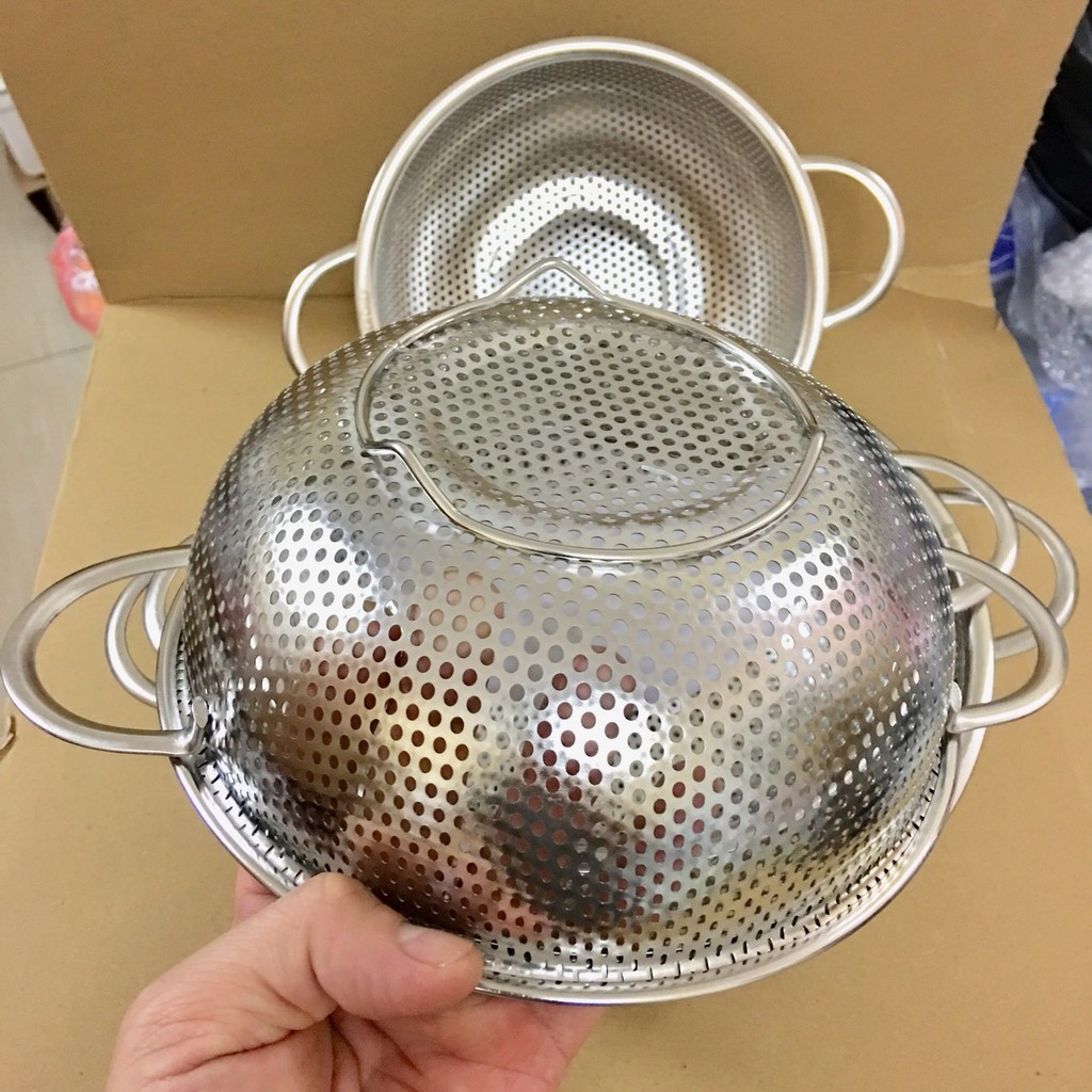 Rổ inox cao cấp 2 quai bền đẹp tay cầm tiện lợi không hoen gỉ từ 16.5cm - 25.5cm, chịu nhiệt tốt 200 độ c