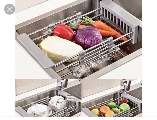 Nhà cửa & Đời sống > Dụng cụ nhà bếp > Khác || Rổ inox đa năng kéo rút tiện lợi đựng chén, rau củ quả, làm ráo nước .Còn hàng