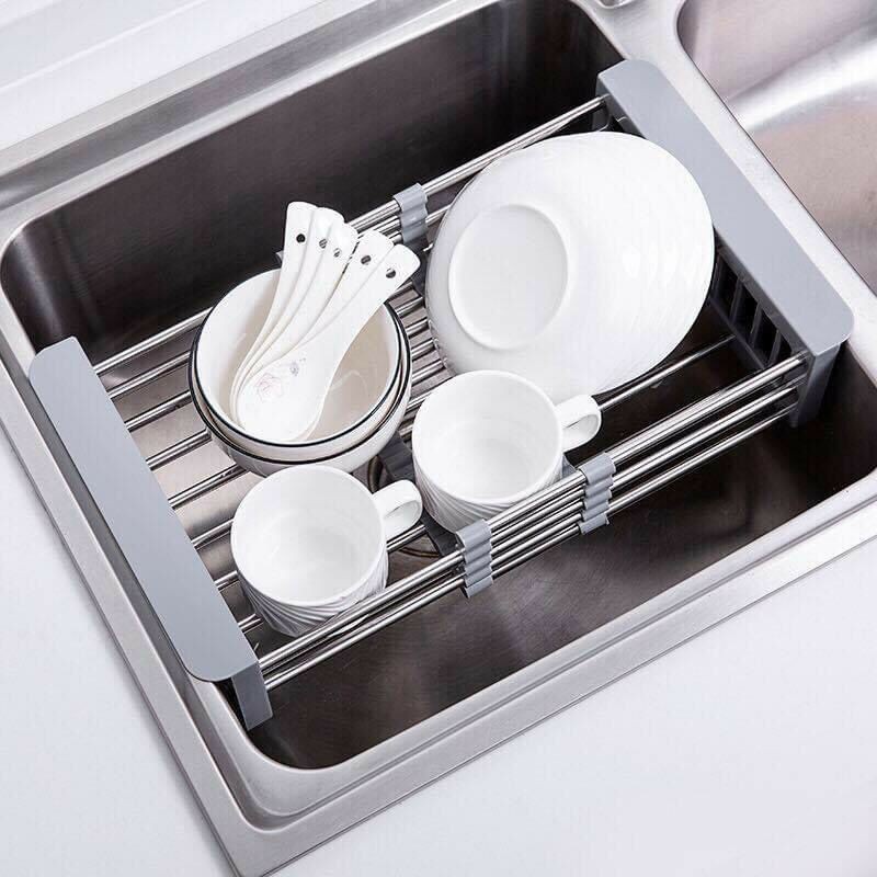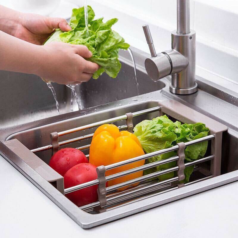 Rổ Inox Gác Bồn Rửa Bát Loại To Đa Năng Điều Chỉnh Được Kích Thước Siêu Tiện Lợi Đựng Rau Củ Quả Thực Phẩm Chén Đĩa