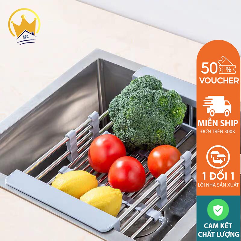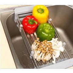 Rổ Inox gác bồn rửa gấp gọn , tiện lợi , đa năng không gây độc hại .