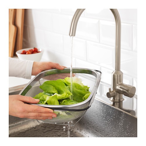 Rổ gác bồn rửa Ikea Idealisk có thể dùng để rửa thực phẩm sạch, rau quả một cách an toàn khi gác ngang rổ lên chậu rửa, không để rổ lọt vào chậu rửa. Ngoài ra, rổ còn dùng để rau củ hoa quả ráo nước, hoặc úp các loại bát đũa, cốc chén sau khi rửa,giúp căn bếp gia đình luôn sạch sẽ.