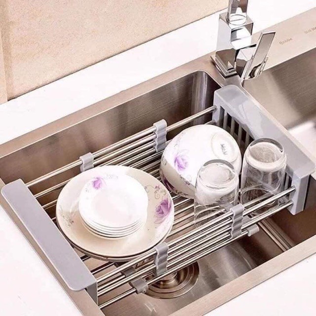 Rổ Inox Gấp Gọn Đa Năng Gác Chậu Rửa