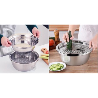 Nhà cửa & Đời sống > Dụng cụ nhà bếp > Bàn nạo, dụng cụ bào, cắt || Bộ Rổ Inox Kèm Nạo Rau Củ 3 Chi Tiết Đa Năng Tiện Dụng hh178Còn hàng