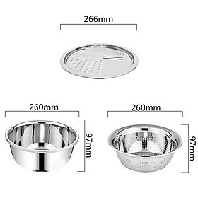 Bộ Rổ Inox Kèm Nạo Rau Củ 3 Chi Tiết-Bộ rổ chậu kèm nạo đa năng tiện lợi