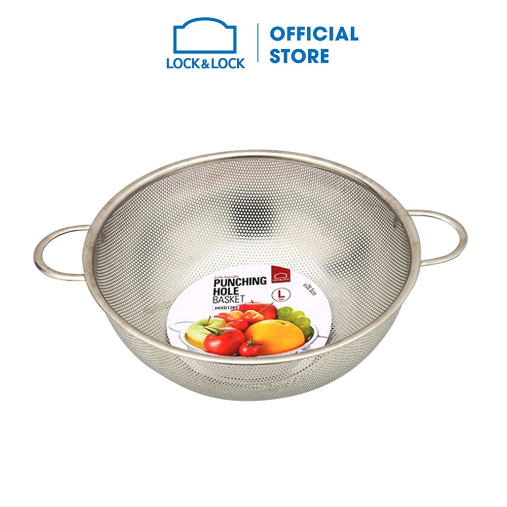 Rổ inox có tay cầm Lock&Lock punching hole 28 cm MIXB1282- Chất liệu inox bền đẹp