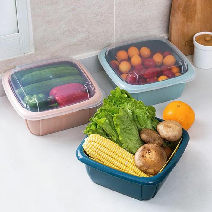 Hộp đựng thực phẩm có rổ nhựa và nắp đậy đa năng khay chậu vuông 2 lớp 3 trong 1 để đồ thức ăn rau củ trái câyBộ rổ ,chậu rửa -hộp đựng rau củ quả thực phẩm 2in1-giúp thực phẩm luôn tươi mới đa chức năng có thể được sử dụng để lưu trữ rau và trái cây