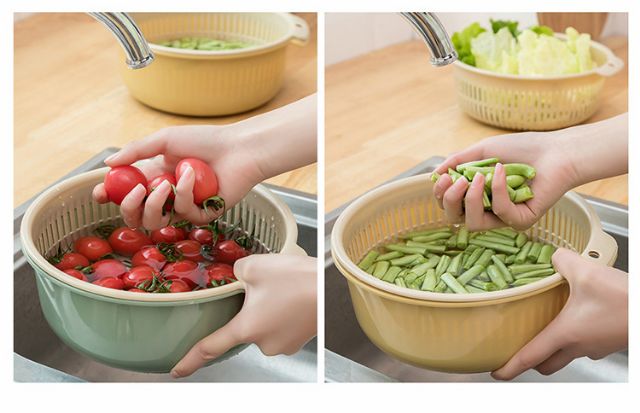 Nhà cửa & Đời sống > Dụng cụ chăm sóc nhà cửa > Chậu, xô & gáo nước || Rổ kèm thau rửa rau củ quả 2 lớp tiện dụngCòn hàng