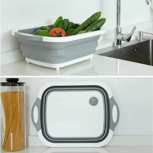 Rổ Kèm Thớt Nhựa Gấp Gọn Tiện Dụng 3In1 ( Chậu Rửa, Rổ Đựng, Thớt Thái)