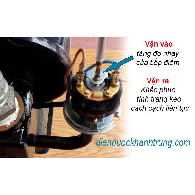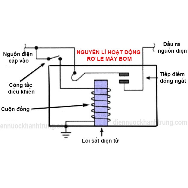 - Nguyên tắc đóng mở: Dựa trên nguyên lý áp lực nước (Khi áp lực nước nhỏ hơn hoặc bằng 1,4kgf/cm2 rơ le sẽ đóng mạch máy bơm sẽ hoạt động, khi áp lực nước cao hơn hoặc bằng 2.4kgf/cm2 rơ le sẽ ngắt nguồn điện để bảo vệ máy bơm và hệ thống van, vòi