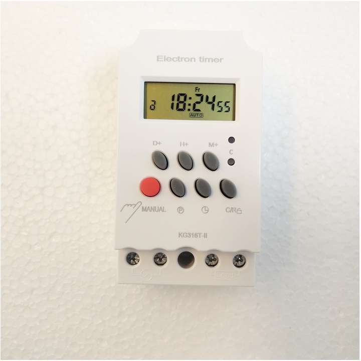 Công tắc hẹn giờ KG316T-II/25A/220v có 16 chương trình, có thể bật thiết bị điện 16 lần trên ngày và tắt thiết bị điện 16 lần / ngày: