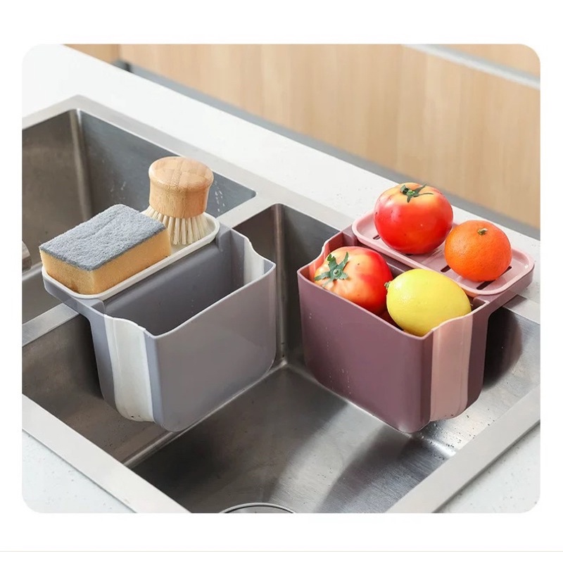Thùng lọc rác gắn bồn rửa bát gấp gọn kèm khay để giẻ lau 2in1 - Rổ lọc rác gắn bồn rửa chén bỏ thức ăn thừa đa năng