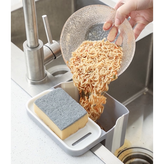 Nhà cửa & Đời sống > Dụng cụ nhà bếp > Dụng cụ lọc || Rổ lọc rác gắn bồn rửa bát kèm khay để giẻ lau 2in1- Giỏ nhựa gắn bồn rửa chén giúp lọc rác thức ăn thừa gấp gọn đa năngCòn hàng
