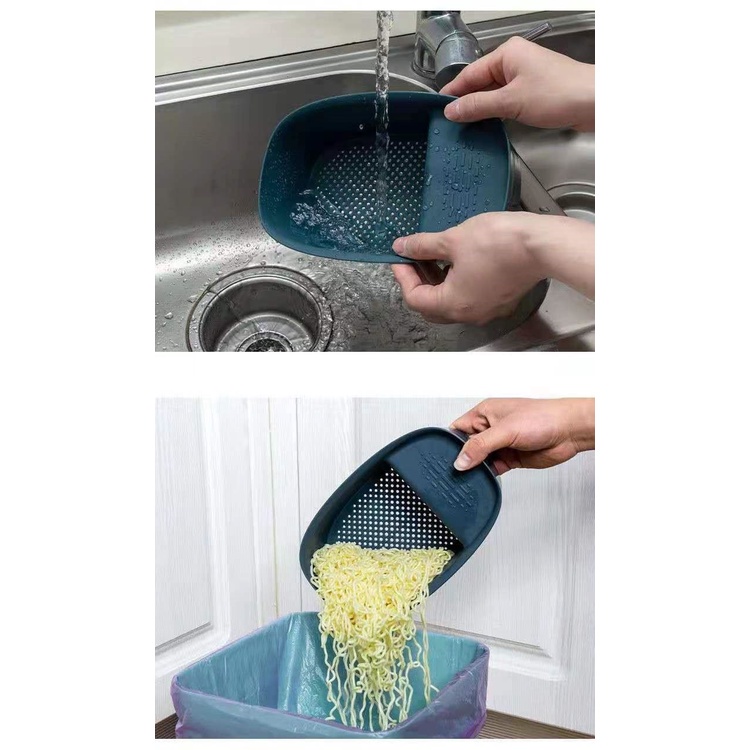 - Cách sử dụng rất đơn giản: Bạn gác rổ lọc rác vào thành bồn rửa bát rồi đổ rác thức ăn thừa vào đó, chờ vài giây cho chảy hết nước thì cầm rổ mang đổ vào thùng rác.- Ngoài tác dụng lọc rác, rổ đựng rác đa năng còn được dùng làm giá đựng giẻ rửa bát, nước rửa chén.