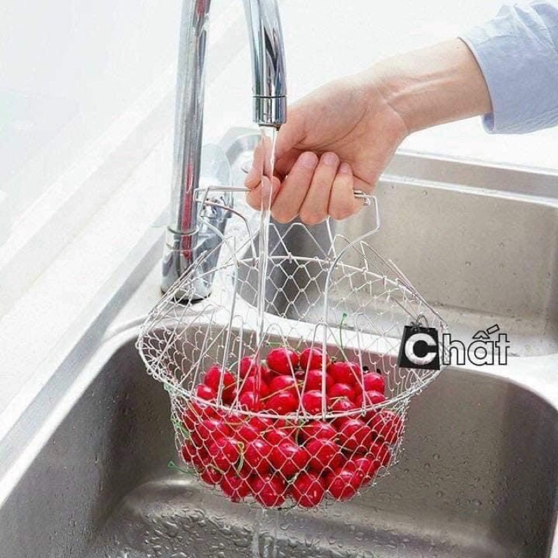 🎋 Rổ gấp gọn có thể: nấu, luộc sơ, luộc chín, chiên ngập, tái , hấp ,chưng , rửa hoa quả ráo nước.