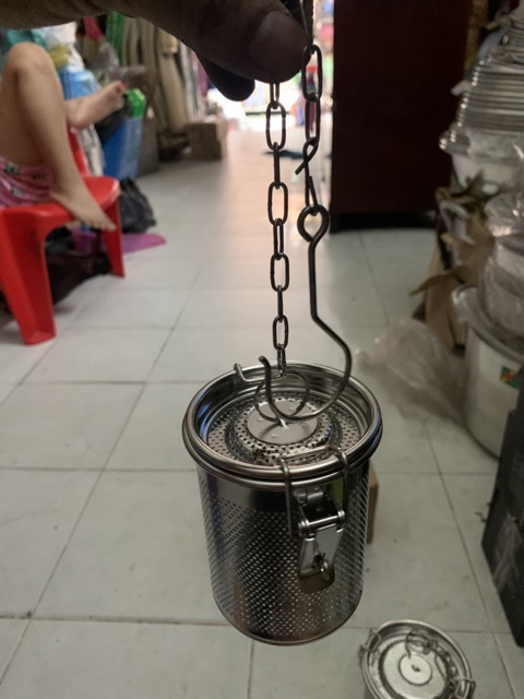 Rổ lưới lổ inox dày và chắc chắn được thiết kế 2 quai gài nắp 2 bên rất chắc chắn và tiện dụng . Rổ dùng để bỏ đồ gia vị vào nồi nước lèo và để lọc không cho xác gia vị rớt ra nồi nước lèo , rổ có trang bị 1 dây xích để treo trên thành nồi .Lưu ý : có 2 size Size 8cm và size 10,5cm như hình chụp của shop tự chụp nha quý khách