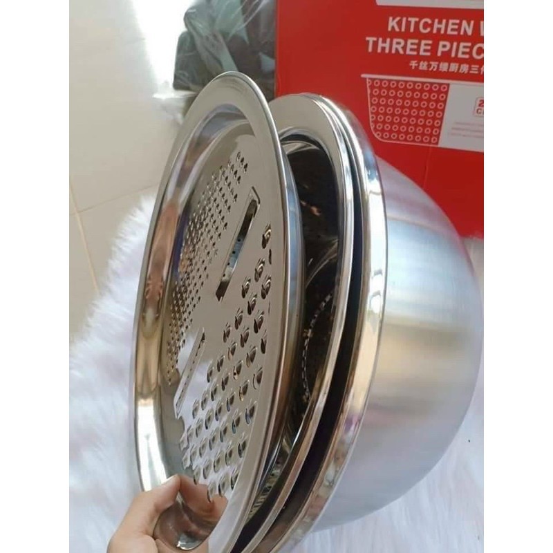 Nhà cửa & Đời sống > Dụng cụ nhà bếp > Bàn nạo, dụng cụ bào, cắt || [Rổ Nạo] Bộ nạo rau củ 3 món bào Nhật Bản - Rổ nạo rau củ kiêm rổ và chậu inox cao cấp đa năng,tiện lợi dùng nhà bếpCòn hàng