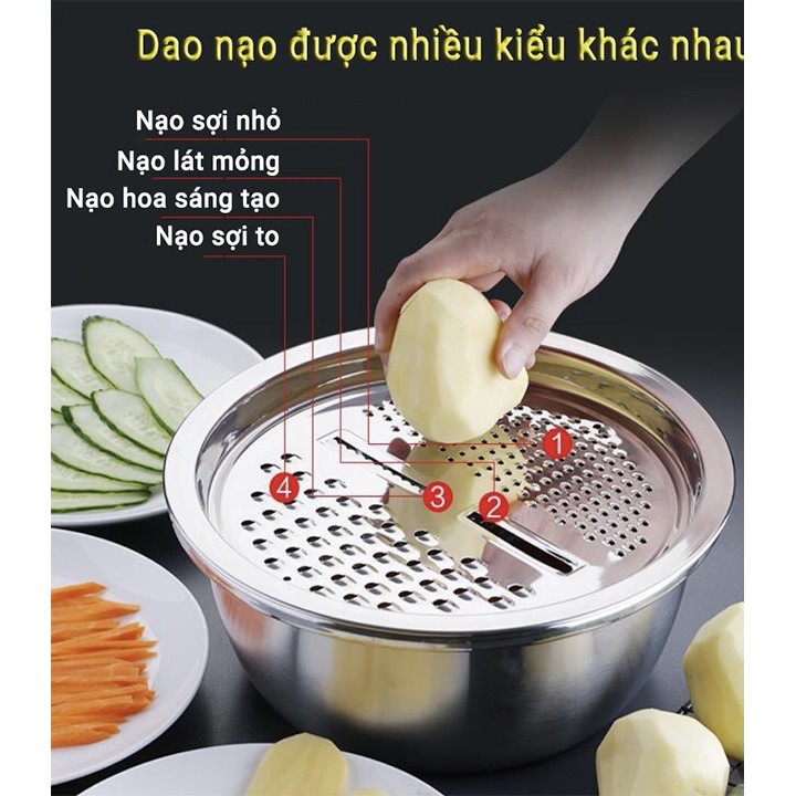 Nhà cửa & Đời sống > Dụng cụ nhà bếp > Bàn nạo, dụng cụ bào, cắt || Bộ Rổ Nạo Củ Quả 3 IN 1 Siêu Tiện Ích Nhà Bếp, Rổ Nạo Đa Năng Inox 304 Không Gỉ - MS124Còn hàng