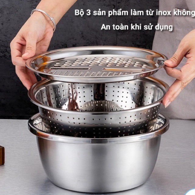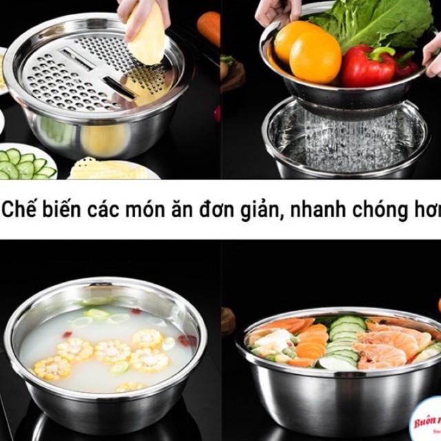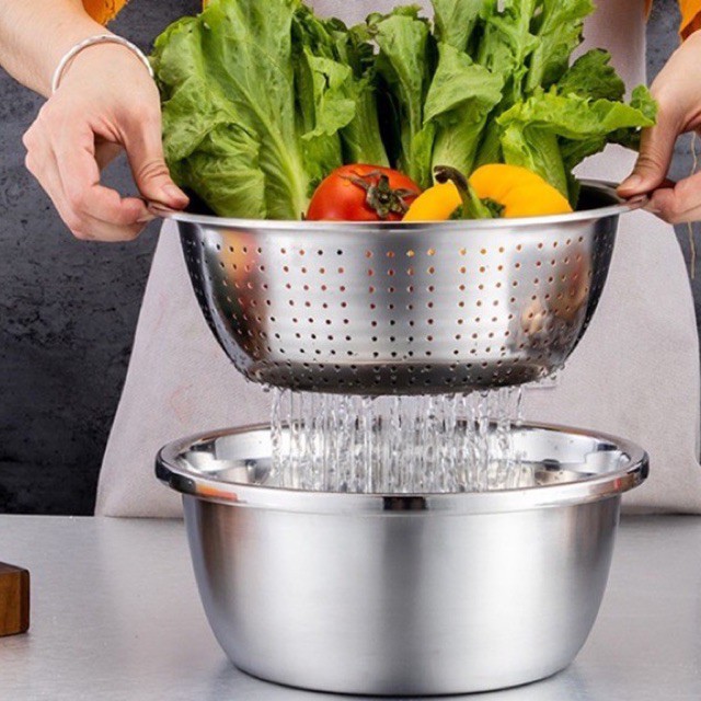 Nhà cửa & Đời sống > Dụng cụ chăm sóc nhà cửa > Chậu, xô & gáo nước || Bộ rổ nạo đa chức năng bằng inoxCòn hàng