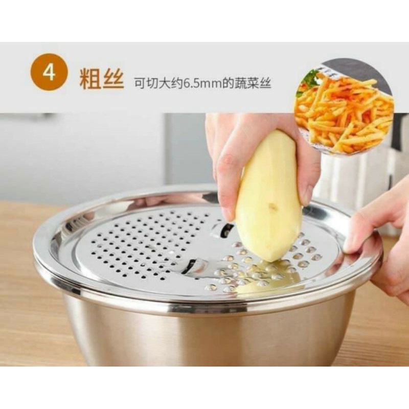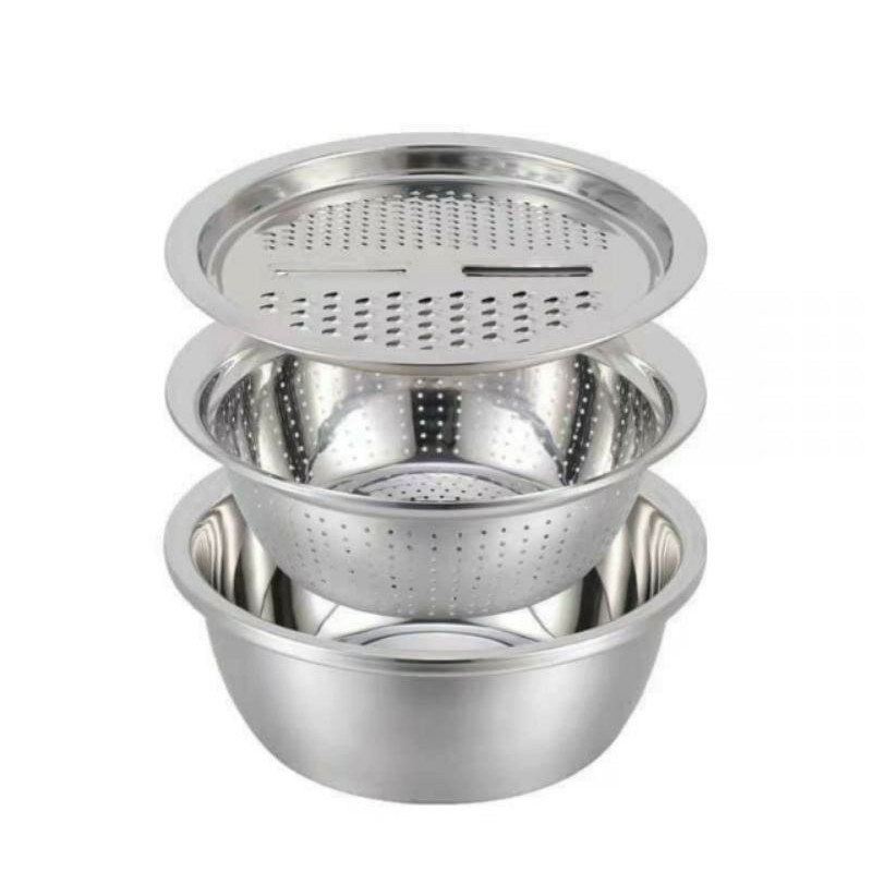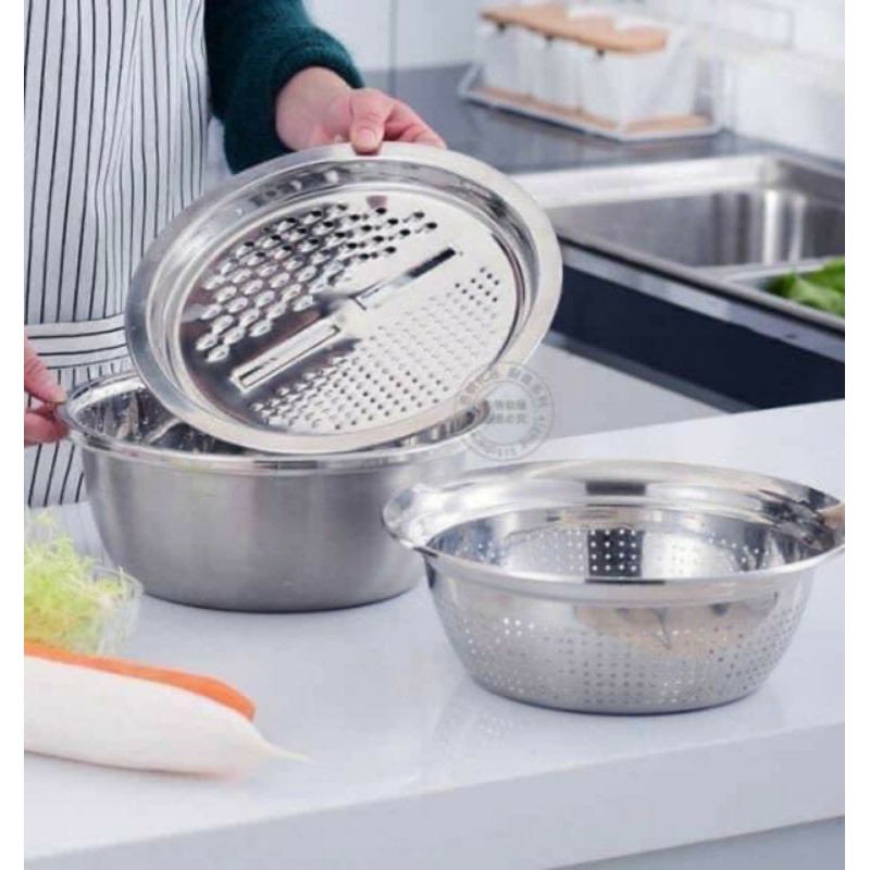 Nhập 70kBộ Rổ, Chậu Kèm Nạo Rau Củ Quả Inox Đa Năng 3in1