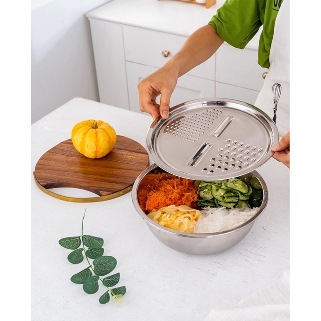 ✨3 IN 1- Một bộ rổ gồm 3 sản phẩm: nắp rổ để nạo, rổ đựng và rổ rửa.