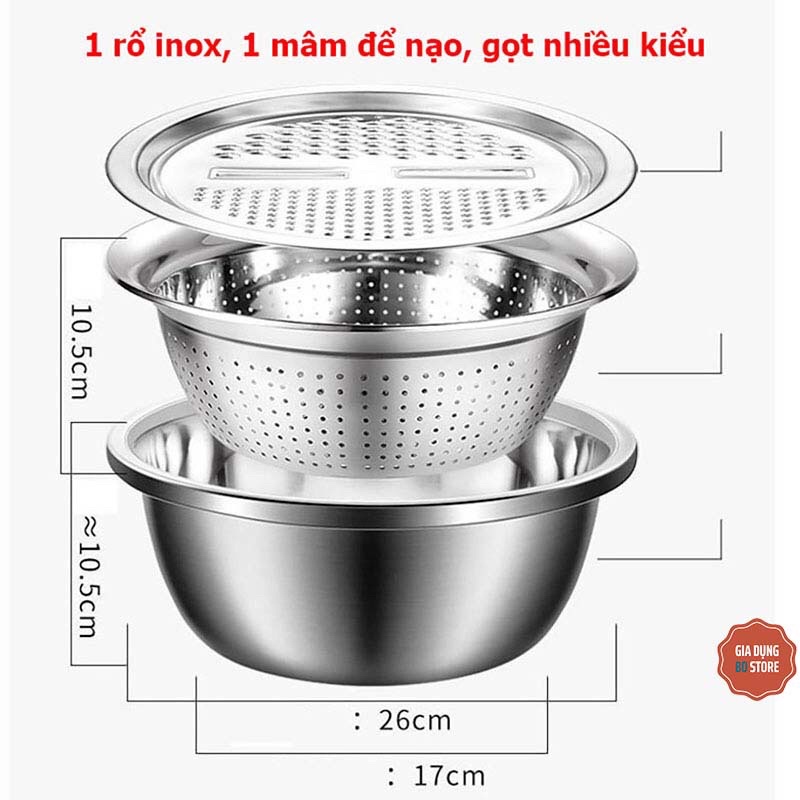 Giới thiệu Bộ Rổ Nạo Inox 3 Món