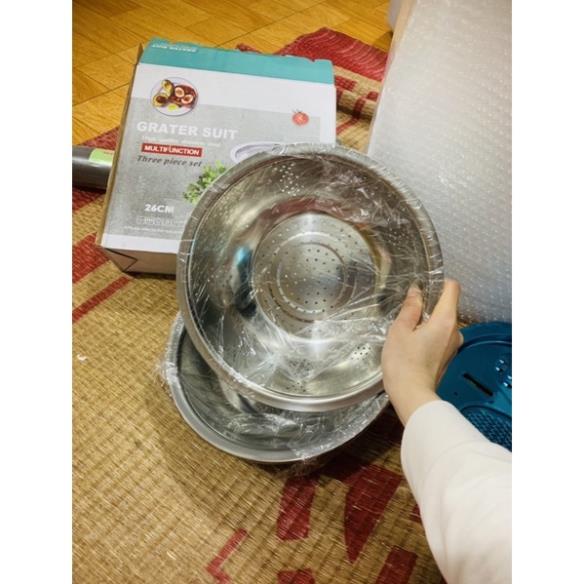 Bộ rổ nạo inox 304 đa năng 3 in 1 dụng cụ bào sợi rau củ thau, rổ bền đẹp cho nhà bếp