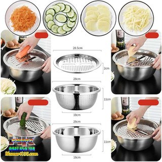 Bộ Rô Nạo INOX Kèm Chậu Đa Năng 3 Trong 1 Bát Inox Trộn Rau Củ Kèm Bộ Nạo Đa Năng bokisd.store