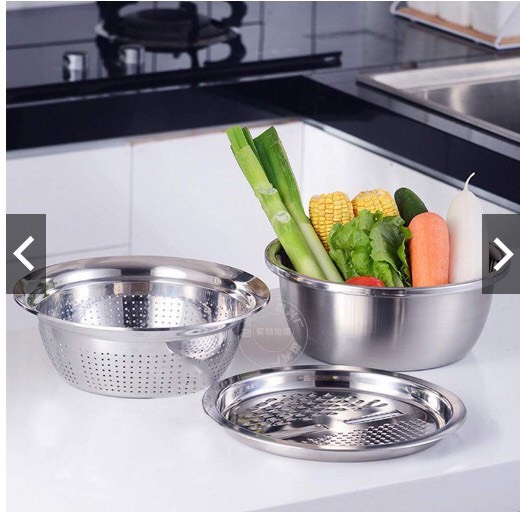 Nhà cửa & Đời sống > Dụng cụ nhà bếp > Bàn nạo, dụng cụ bào, cắt || Bộ rổ nạo inox kèm chậu đa năng, Bộ thau rổ nạo củ quả 3 mónCòn hàng
